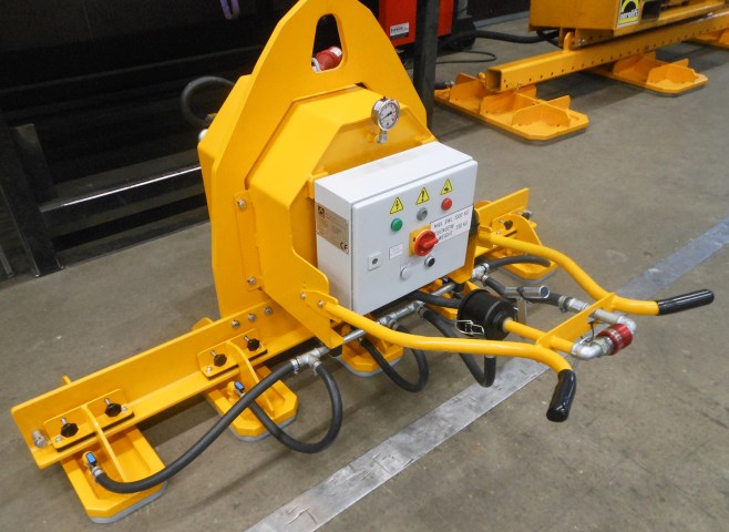 不同尺寸和切口铅板的内部运输。针对这种情况,我们设计了一种紧凑型的手动真空升降机。每个吸盘都是可无限调节的,可以启动和关闭。全套不同的铅板由这台真空升降机提升。